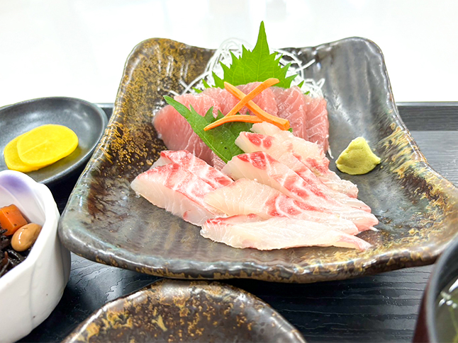 由良町の漁師さんから直接買い付ける魚やしらす、あかもく、ワカメなどの地元食材を使ったおいしい料理をご提供。入荷状況に合わせて日々変わるお刺身定食が人気です。